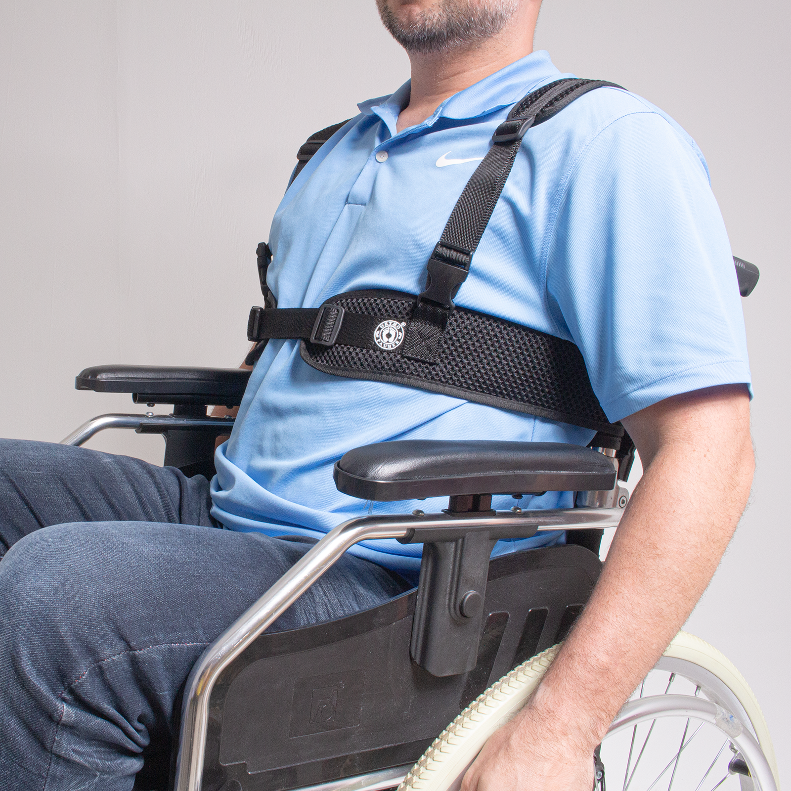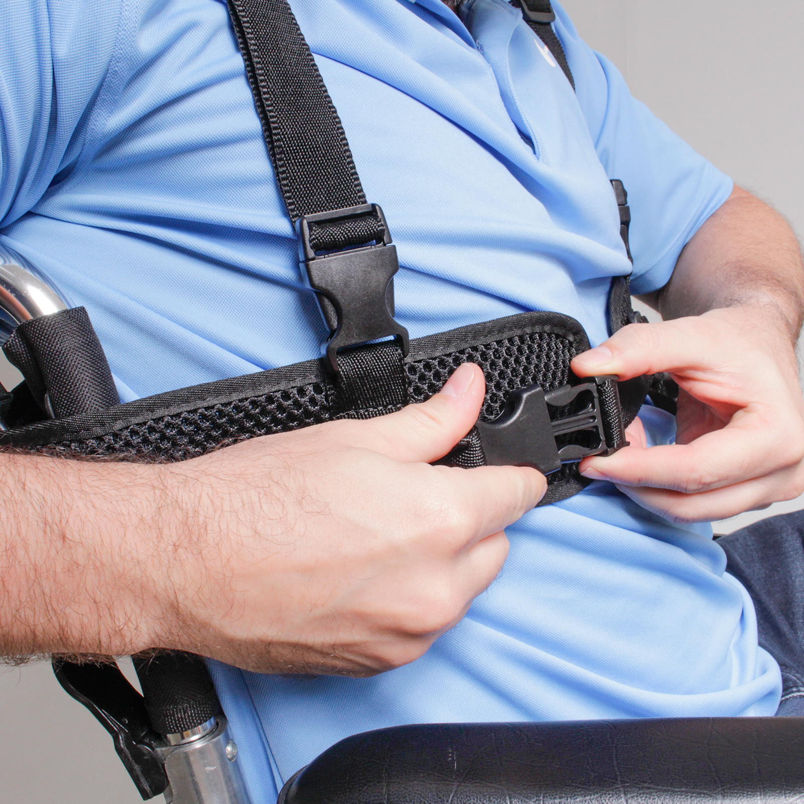 Evita acidentes, prevenindo que o usuário não caia da cadeira, com um bordado resistente e uma fivela ajustável, com um material acolchoado, mantém o usuário seguro e confortável durante seu uso.