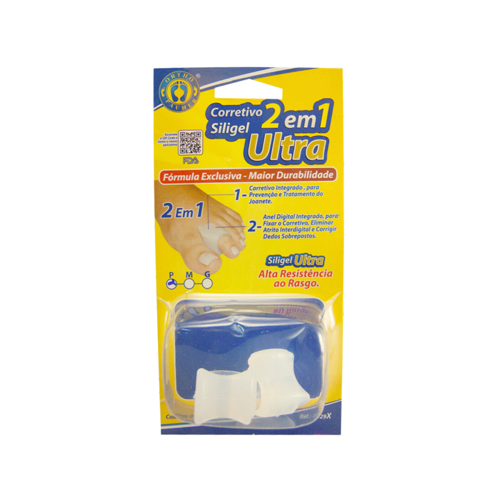 O corretivo ajuda na prevenção e no tratamento do joanete, enquanto o anel digital mantém o produto no lugar, reduz o atrito entre os dedos e contribui para a correção de dedos sobrepostos. Produzido com a fórmula exclusiva Siligel Ultra, apresenta alta resistência ao rasgo, maior durabilidade e excelente custo-benefício para o uso diário.
