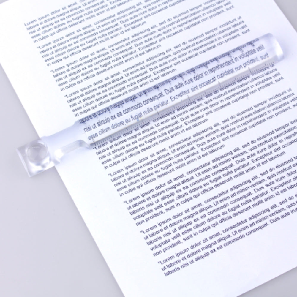 Indicação: Para auxiliar os idosos e todos aqueles que possuam alguma dificuldade em enxergar ou que a capacidade da visão esteja de alguma forma comprometida. Fácil de transportar, facilita a visualização durante a leitura de bulas de remédios, documentos, livros, jornais entre outros textos do cotidiano. Pelo seu comprimento, também pode ser utilizada como uma régua precisa, visto que possui marcações em centímetros e polegadas em toda superfície.