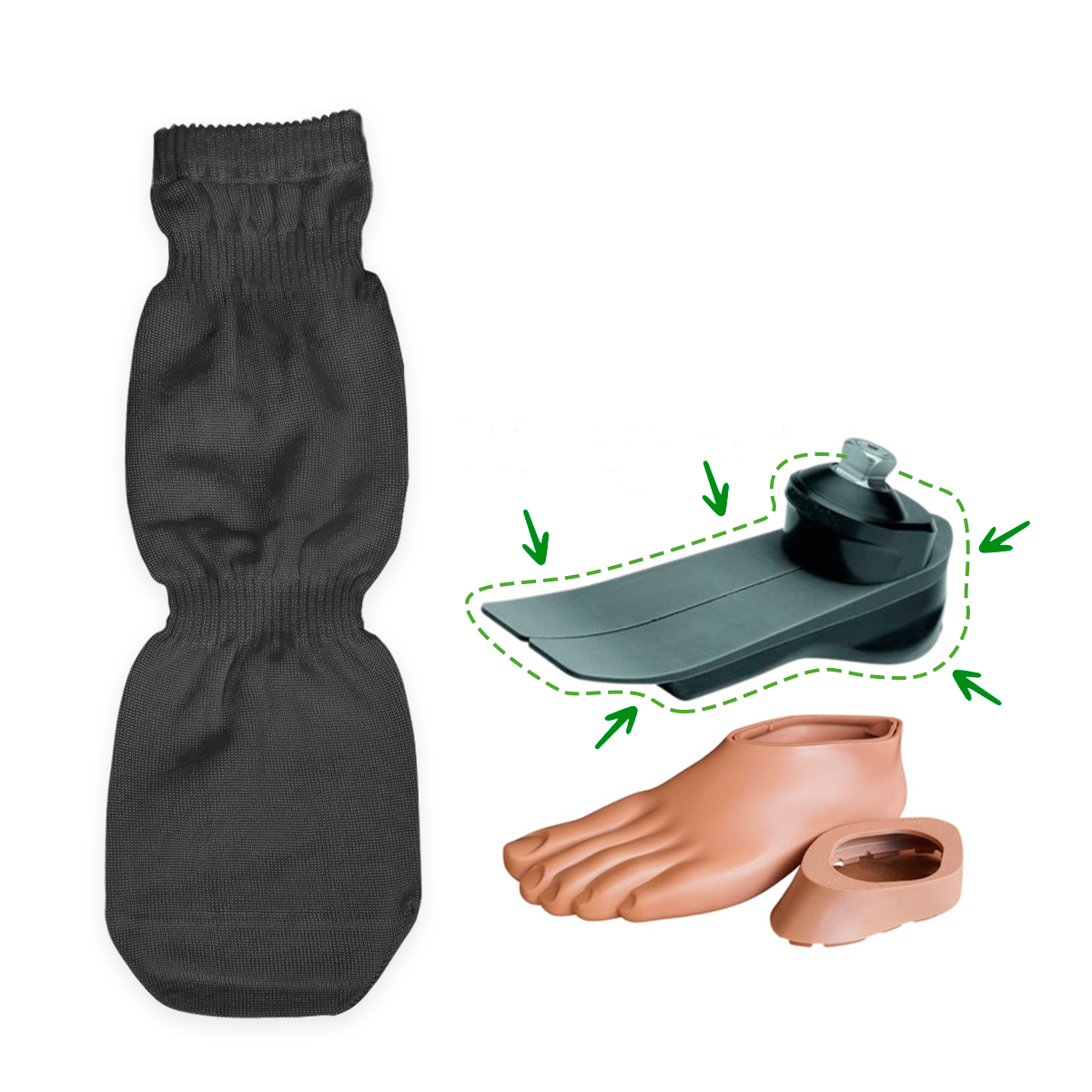 Destaque: Material resistente que evita que as lâminas de carbono do dedo do pé e do calcanhar do pé protético se esfreguem e causem desgaste prematuro. Eliminado o atrito, absorvendo o suor, flexível e macia.
