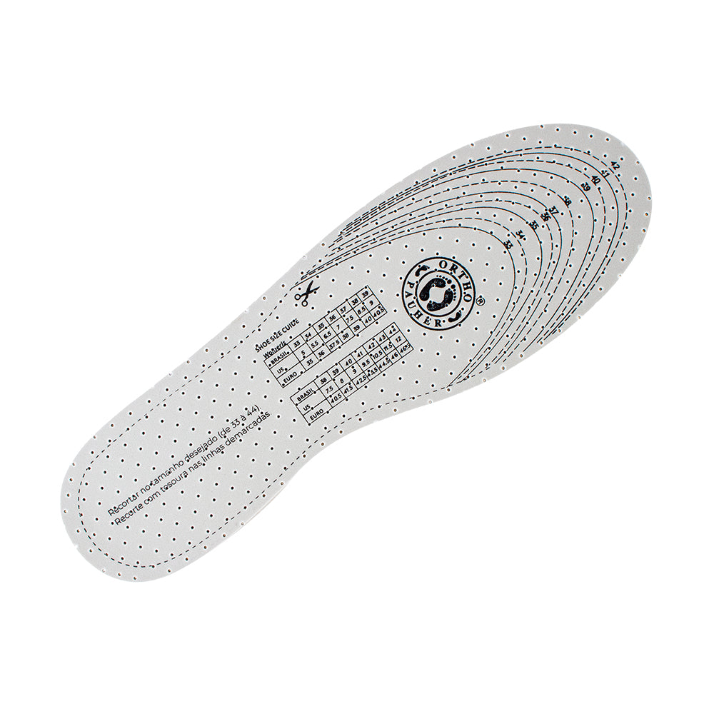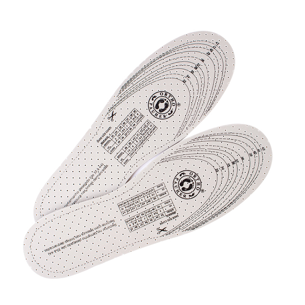 Destaque: Dupla camada de espuma, antibacteriana, perfumada, recortável, ventilada e oferece extremo conforto. Perfurada para permitir melhor ventilação, mantendo os pés enxutos.