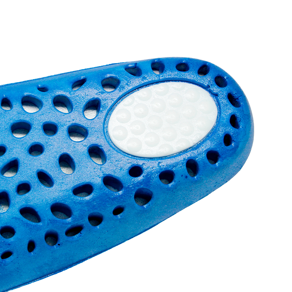 O Apoio Total do Arco Plantar somados as 2 Almofadas de Gel no calcanhar e metatarsos para alívio de pressão e suas dezenas de orifícios na parte inferior, auxiliam na distribuição da pressão plantar, conforto, absorção de impacto e alívio das dores.